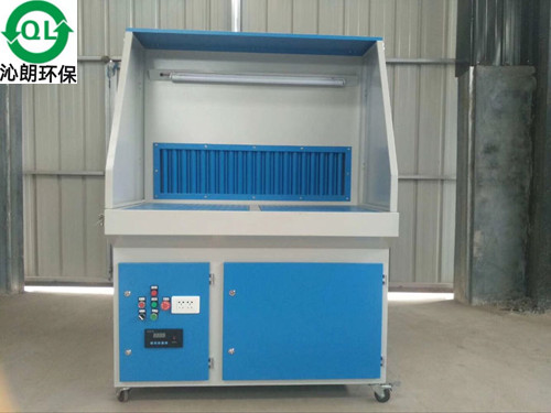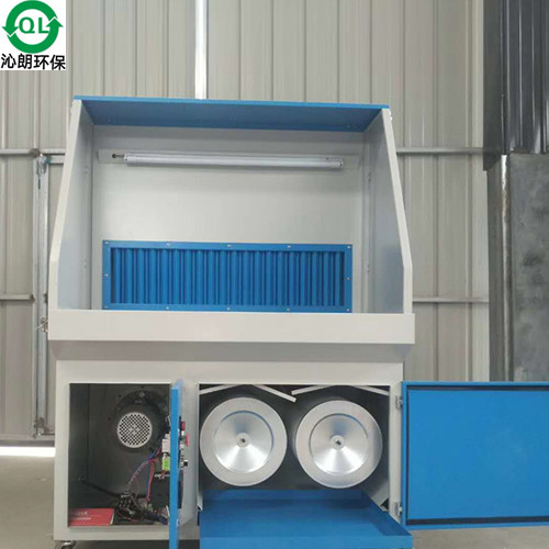 抛光打磨平台,是一种集工作台与除尘器为一体的工业除尘设备。打磨工作台适用于中小型精细加工、不规则部件加工工况。在不干涉工人日常作业的前提下,打磨工作台可有效捕集悬浮的细小尘埃,给工人提供洁净健康的工作环境 抛光打磨平台工作原理特点 1、工作台进风口处设置一导流板,用于防止含尘直接冲击滤芯,从而延长滤芯的使用寿命。 2、风机采用离心风机,具有运行平稳等特点。 3、为了防止噪声污染,对风机采取降噪处理。 4、集工作台与除尘功能于一身,直接在产尘源头进行粉尘的。 5、结构紧凑,占地面积小,可双工位或多工位同时作业。 6、可根据用户所治理的粉尘性质选择过滤媒介,以满足不同性质粉尘的清理。 7、滤筒的使用寿命长,性能稳定,更换方便。 8、工作台的底面、正面和上方均有吸风口,可有效控制粉尘的飞散。 9、配置新型低噪音风机,吸风量不变,而噪音更低。可保障操作者的身心健康。 10、脉冲反吹式自动清灰,可保障设备始终处于良好工作状态。 11、抽屉式集尘箱,保障倒灰快捷、方便 抛光打磨平台应用范围 各种焊接、抛光、打磨和工件去毛刺、等离子切割等。烟草、医药、食品加工、建材、冶金、化工、电力、机械制造、铸造等行业的除尘、物料回收及空气过滤之用。