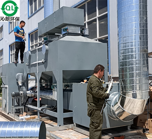 催化燃烧设备主要由活性炭吸附浓缩设备、催化燃烧设备和电控装置组成。催化燃烧设备是根据吸附浓缩(效率高)和催化燃烧(节能)两个基本原理设计的。即吸附浓缩—催化燃烧法。 催化燃烧废气处理设备是治vocs废气的主要设备,对处理工业有机废气应用于油漆、橡胶加工、塑料加工、树脂加工、皮革加工、食品业和铸造业等工艺有极高的净化效果。 催化燃烧是放热反应,放热量的大小取决于有机物的种类及其含量。如能依靠废气燃烧的反应热维持催化燃烧过程持续进行是最经济的操作方法。而能否以自热维持体系的正常反应则取决于燃烧过程的放热量、催化剂的起燃温度、热量回收率、废气的初始温度等条件。催化剂相应的起燃温度分别为200℃、250℃、300℃;废气的初始温度分别为30℃和150℃。废气的初始温度越高,废气中有机物的浓度越高,实现自热运转的可能性越大。而工业有机废气中5000mg/m3左右的有机物残留量是常见的,只要热交换器的换热效率能达到50%-60%就可利用热交换器回收燃烧反应热来维持催化燃烧的持续进行。