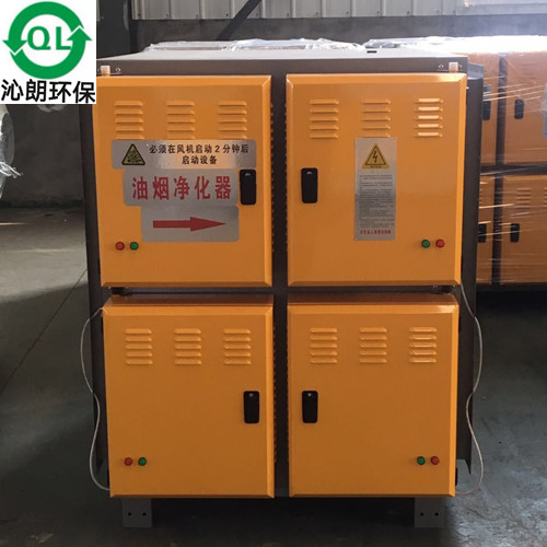 工业油烟净化器顾名思义是在工业生产方面用的比较多的一种油烟净化器,正实现了低空排放,排放口目测无油烟,符合国家环保要求,并且运行噪音小、净化效率高。 工业油烟净化器的产品特色 极高的处理效果,在额定处理风量,油烟去除率达95%以上,颗粒物去除率达95%以上; 油雾中的油回收量大,纯度高,可在短期内收回设备投资; 安全性能高,设备带有完善的电气保护功能, 模块式设计,多电源控制,在部份电源停止工作的情况下不影响设备使用; 清洗维护简便,只需打开设备检修门取出电场浸泡冲洗凉干即可像新设备一样使用。 为什么要清洗油烟净化器? 油烟净化器主要是根据物理原理去除油烟,以达到油烟净化的效果。使用一段时间后,内部电场会产生聚油,电场环境变脏,吸附能力减弱,净化效果明显降低。如果不及时进行清洗,就会产生大量的油污,影响电场间距,发生火灾。一旦油污与火花接触,或温度过高而无法生火,就很容易引起火灾。 无论是为了保证油烟净化器的净化效率和使用寿命,还是为了避免不必要的行政处罚,油烟净化器都需要定期清洗。如果要求专业清洁公司进行清洗 为了节省成本,一些餐饮业用户会选择自我清洁。