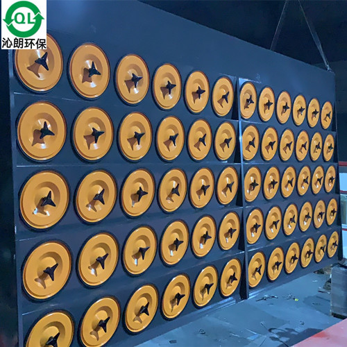 斜插滤筒除尘器的过滤元件是滤筒。滤筒的构造分为顶盖、金属框架、褶形滤料和底座等四部分。由这四部分组成的滤筒有圆形、扁形和锥形等。 滤筒是用设计长度的滤料折叠成褶,首尾黏合成筒,筒的内外用金属框架支撑,上、下用顶盖和底座固定。顶盖有固定螺栓及垫圈。圆形滤筒,扁形滤筒的外形。 滤筒的上下端盖、护网的粘接应可靠,不应有脱胶、漏胶和流挂等缺陷;滤筒上的金属件应满足防锈要求;滤筒外表面应无明显伤痕、磕碰、拉毛和毛刺等缺陷;滤筒的喷吹清灰按需要可配用诱导喷嘴或文氏管等喷吹装置,滤筒内侧应加防护网,当选用D≥320mm,H≥1200mm滤筒时,宜配用诱导喷嘴。 斜插滤筒除尘器主要性能指标 脉冲气流没有经过文丘里就直接喷吹进入滤筒内部。将会导致滤筒靠近脉冲阀的一端(上部)承受负压,而滤筒的另一端(下部)将承受压力如图6-29所示。这就会造成滤筒的上下部清灰不同而可能缩短使用寿命,并使设备不能达到有效清灰。 为此可在脉冲阀出口或者脉冲喷吹管上安装滤筒用文丘里喷嘴。把喷吹压力的分布情况改良成比较均匀的全滤筒高度正压喷吹。 灰尘堆积在滤筒的折叠缝中将使清灰比较困难。所以折叠面积大的滤筒(每个滤筒的过滤面积达20~22m2)一般只适合应用于较低入口浓度的情况。比较常用滤筒尺寸与过滤面积。 斜插滤筒除尘器脉冲喷吹装置的分气箱应符合JB/T 10191-2000的规定。洁净气流应无水、无油、无尘。脉冲阀在规定条件下,喷吹阀及接口应无漏气现象,并能正常启闭,工作可靠。 脉冲控制仪工作应准确可靠,其喷吹时间与间隔均可在一定范围内调整。诱导喷吹装置与喷吹管配合安装时。诱导喷吹装置的喷口应与喷吹管上的喷孔同轴,并保持与喷管一致的垂直度,其偏差小于2mm。 斜插滤筒除尘器的维护保养 1.制定维护管理值班制度,值班人员要记录运行情况。经常检查电控清灰装置运转是否正常,调整清灰时间,以保证清灰效率。 2.定期检查压缩空气系统运行是否正常,气源压力是否稳定,是否符合要求(0.3-0.4公斤) 3.随时观察烟尘的排放浓度,如发现冒灰,应及时检查滤筒破损情况和过滤室密封情况,堵塞漏气孔隙,更新滤筒。 4.除尘器停机前,应对滤筒清灰一次,清理滤筒上的积灰。根据气体工况及粉尘性质,选择滤筒的材质及规格;选择清灰系统;有效节能清灰系统的设计;自动控制系统的设计;保护系统的选择等。