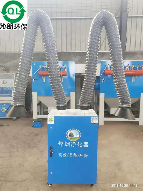 移动式焊烟净化器主要是针对工业生产中出现的粉尘进行收集净化。我们都知道在焊接、喷砂等工业生产活动中容易产生大量的粉尘,而这些粉尘对人体造成的伤害也是不容小觑的。如何给工人们创造一个安全的工作环境成为厂家们急需考虑的问题。现如今出现的各种各样的焊烟净化器受到了工厂、车间的追捧,但并不是所有的焊烟净化器都一定适合您的工厂。 移动式焊烟净化器工作原理通过风机引力作用,焊烟废气经向吸尘罩吸入设备进风口,设备进风口处设有阻火器,火花经阻火器被阻留,烟尘气体进入沉室,利用重力与上行气流,先将粗粒尘直接至灰斗,微粒烟尘被滤芯捕集在外表面,洁净气体经滤芯过滤净化后,由滤芯中心流入洁净室,洁净空气又经活性碳过滤器吸附进步净化后经出风口达标出。 工作中产生的烟尘由吸气罩吸入经济型烟尘净化器,先通过净化器的过滤膜对颗粒进行分离截留,初步过滤后的空气再进入二层主要滤芯进行净化,主要滤芯的过滤效果达到99.9%。得益于主过滤芯的效过滤精,过滤后的干净空气通过净化器下方两侧的栅格风口直接入室内在室内循环。移动式焊接烟尘净化器是款针对工作场所不固定、焊接点位多变而设计的款烟尘净化设备。