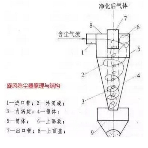 旋风除尘器结构及原理图: